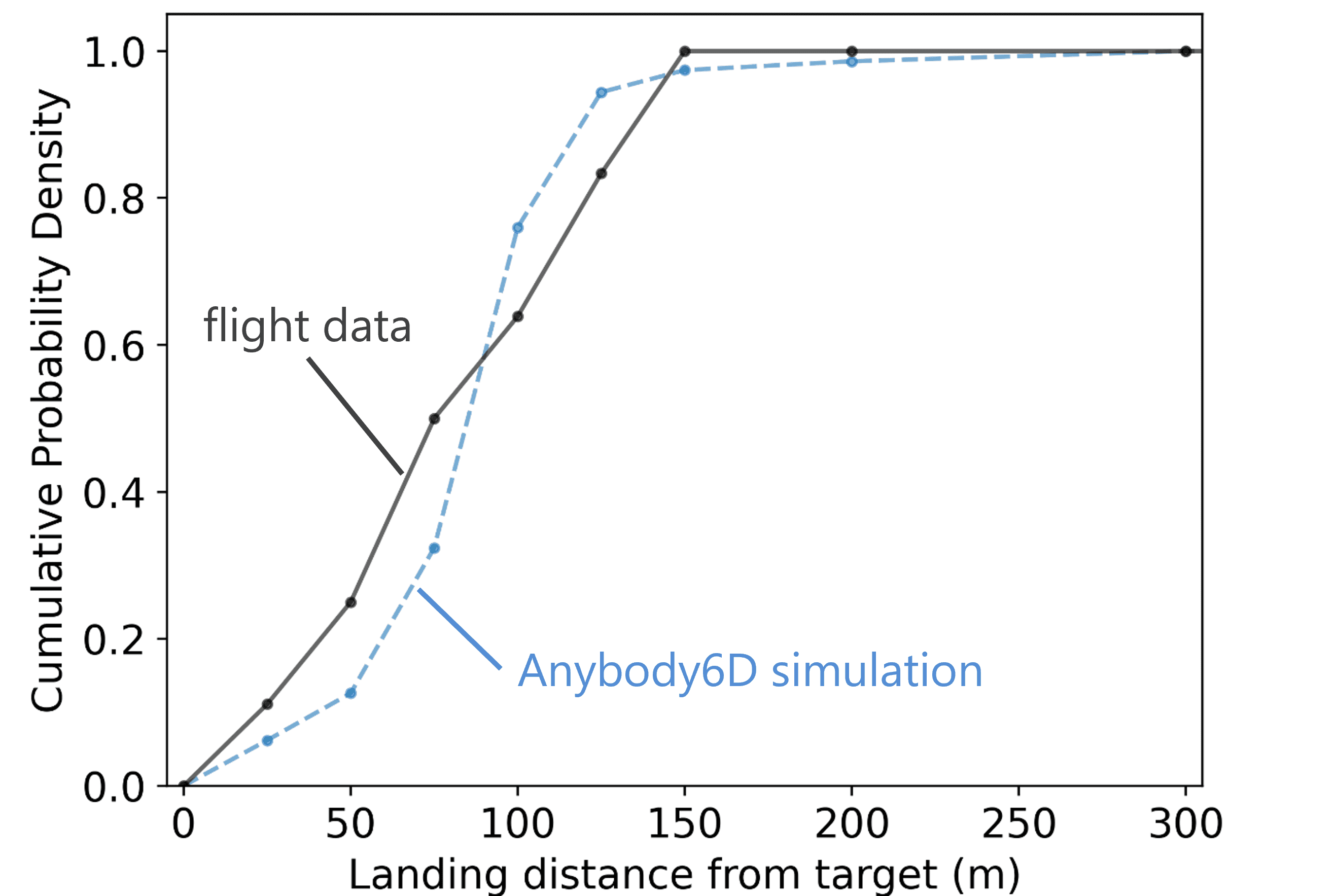 Landing accuracy comparison of Monte Carlo simulations to flight data
