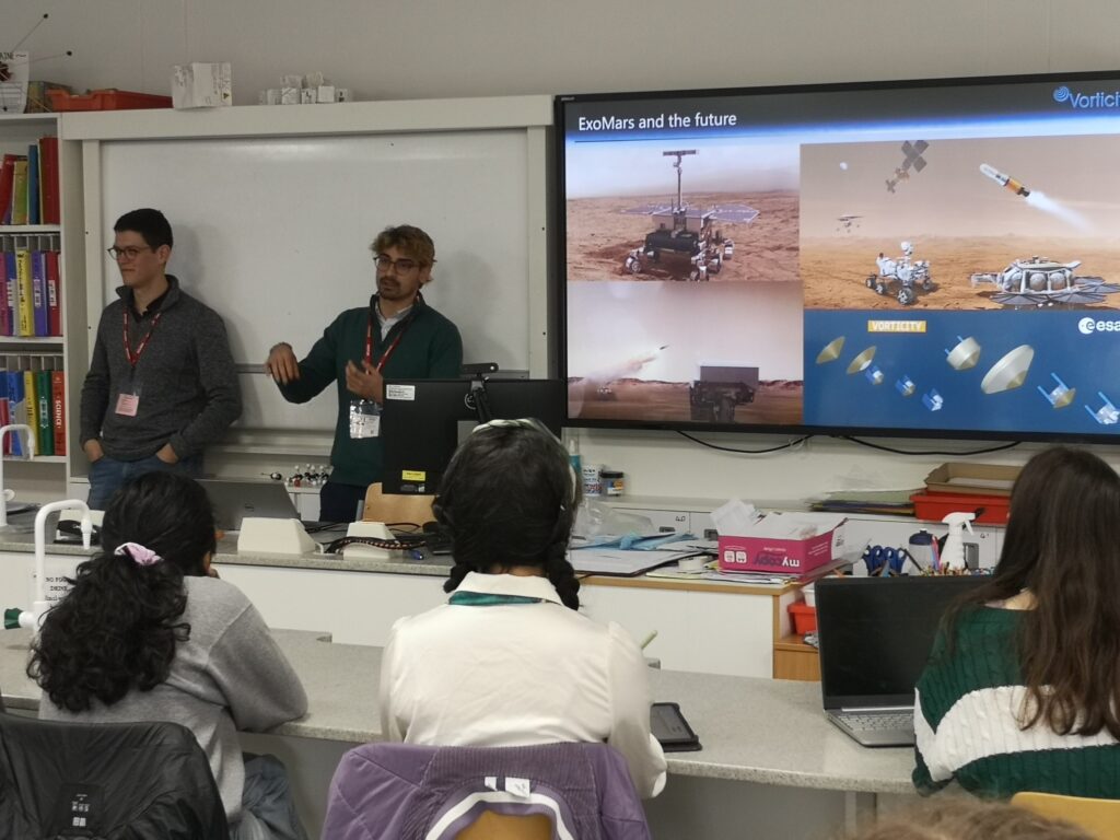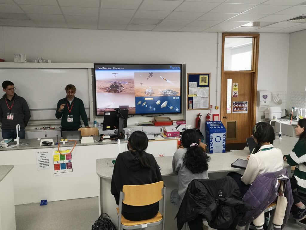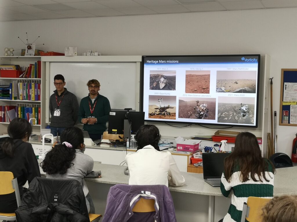 Alvina, one of the students who attended the talk wrote: “The recent talk by Juan Rodgers and Joseph Lynch from Vorticity, focusing on the challenges of landing probes and spacecraft on Mars, was both enlightening and engaging. What stood out to me were the various tests the parachute had to undergo before being used in the ExoMars mission. They shared fascinating footage of the High Altitude Test and Dynamic Extraction test, showcasing the incredible complexity involved in achieving precise timing and positioning for parachute deployment. I was particularly intrigued by the simulation of the supersonic parachute, which reveals the astonishingly tiny margins for error in ensuring a flawless deployment. This talk has greatly expanded my understanding of aerospace engineering, especially in relation to the essentials of designing, developing, and testing space flight systems. Despite complex rocket science, they explained the information perfectly. I would love to dive deeper into the underlying scientific principles of aerospace engineering. Thank you!”